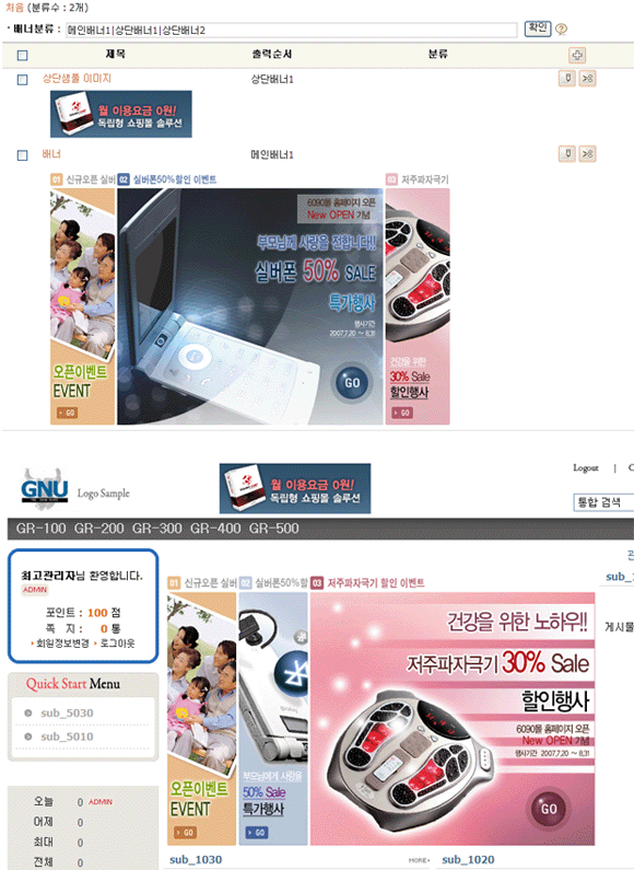 2. 배너관리 확장 및 메인 디자인 관리.