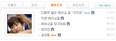 최신글 무한 확장 깔끔한 갤러리 텝메뉴