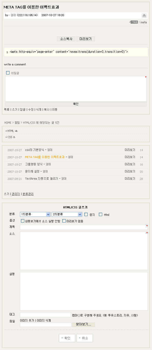 게시판 [오류수정] 소스게시판 (html, java ) div 태그로 작성관련링크