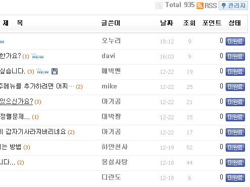 | 제 목 | 글쓴이 | 날짜 | 조회 | 포인트 | 상태 |