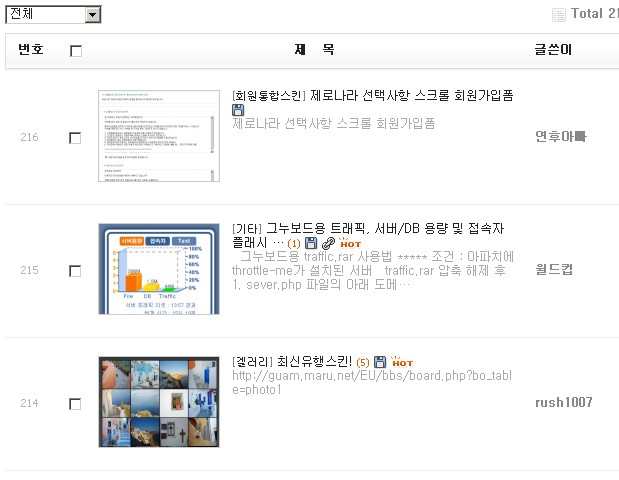 갤러리 내용출력형 스킨 갤러리
