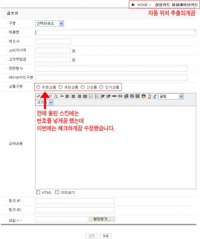 그리고 제품신청하게되면 오더를받는 게시판에 사용될 스킨도 같이 첨부하여 올립니다.