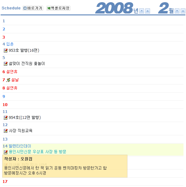 길쭉이 달력 정보