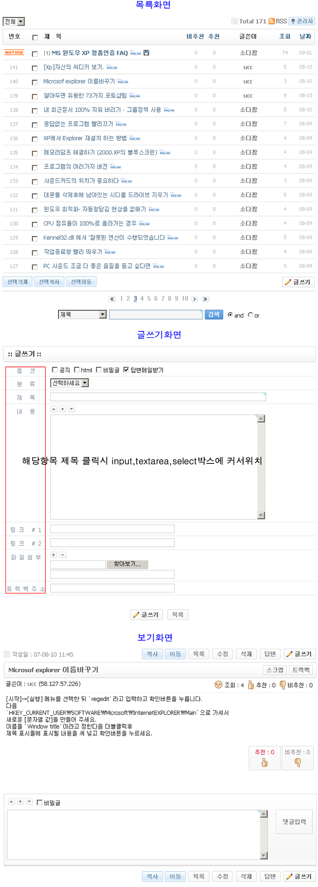 아니면 CSS로만 개발한 게시판인가요? 궁그하네요~