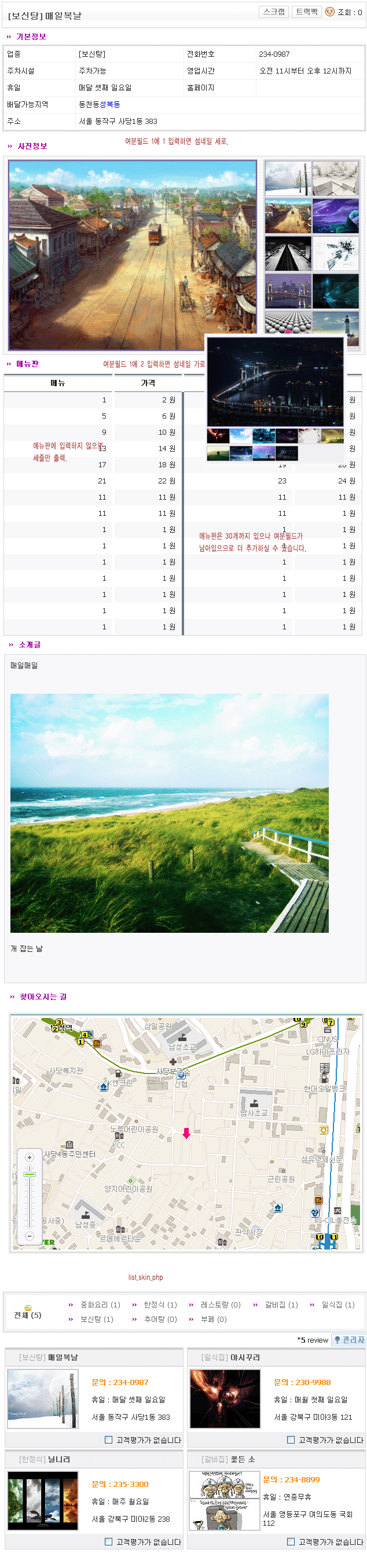 글수정시 영업시간과 배달가능지역을 다시 입력해야되는 번거로움 빼곤 짱이네요...