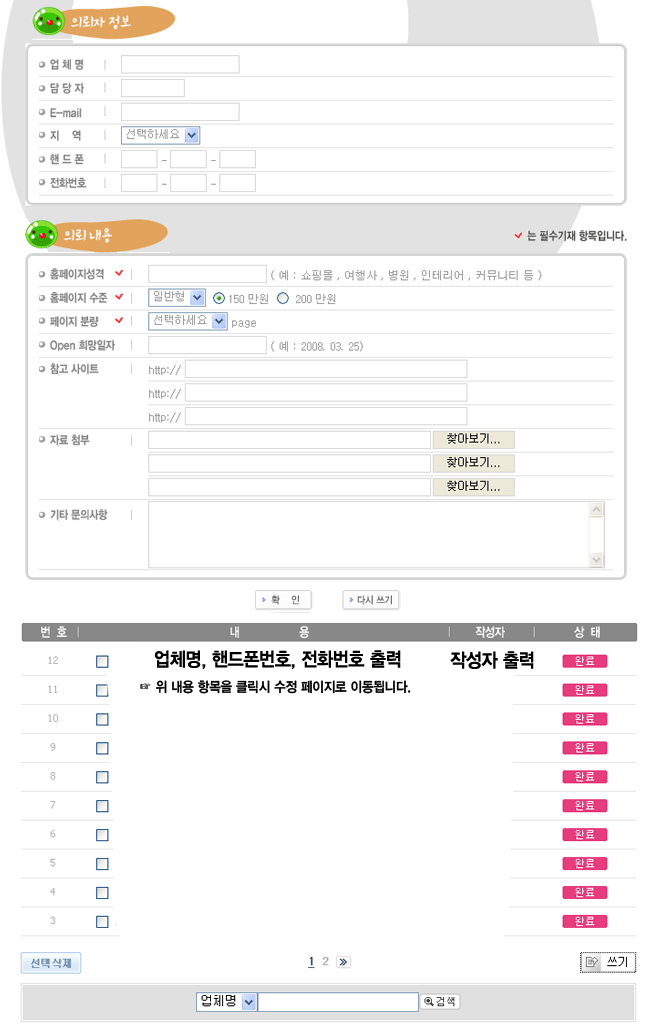 홈페이지 제작업체 온라인견적 게시판 입니다.