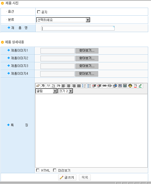 글쓰기 페이지에서 특징 입력부분이 아예 뜨질않네요. cheditor 문제같아요..