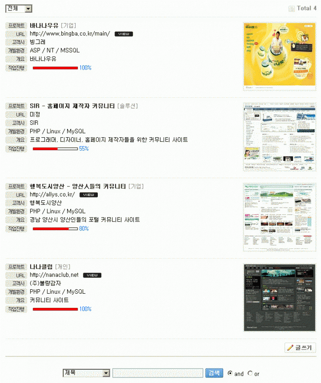 작업(포트폴리오) 진행 게시판 정보
