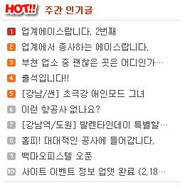 인기검색어 홈피에 주간인기글을 달자! (월간.. 등 활용 가능)