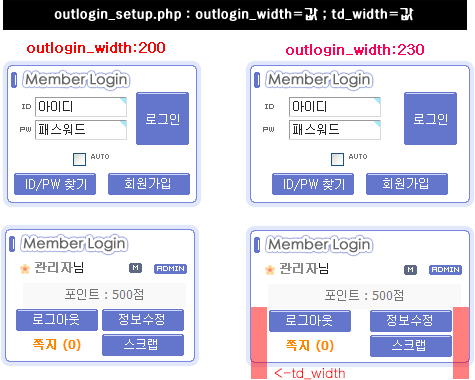 - outlogin_width:스킨의 전체 너비입니다. [기본:100%]