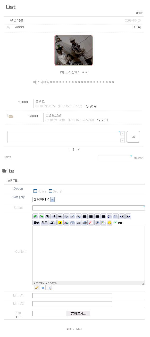 이 스킨은 댓글쓰는칸이 맨위의 첫글밖에 안뜹니다...... 한페이지에 글 한개만 쓰실꺼면 쓰시고....아니면 다음글 스킨을 이용해주세요..