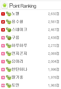 홈피 작업 하면서 수정한 포인트 랭킹입니다.