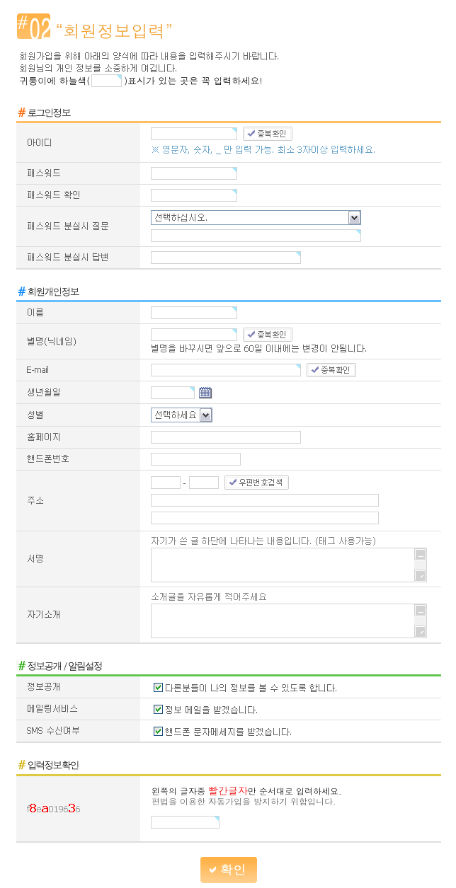 *sms 동의 체크는 핸드폰번호를 사용할 경우만 보여지게 수정됬습니다.