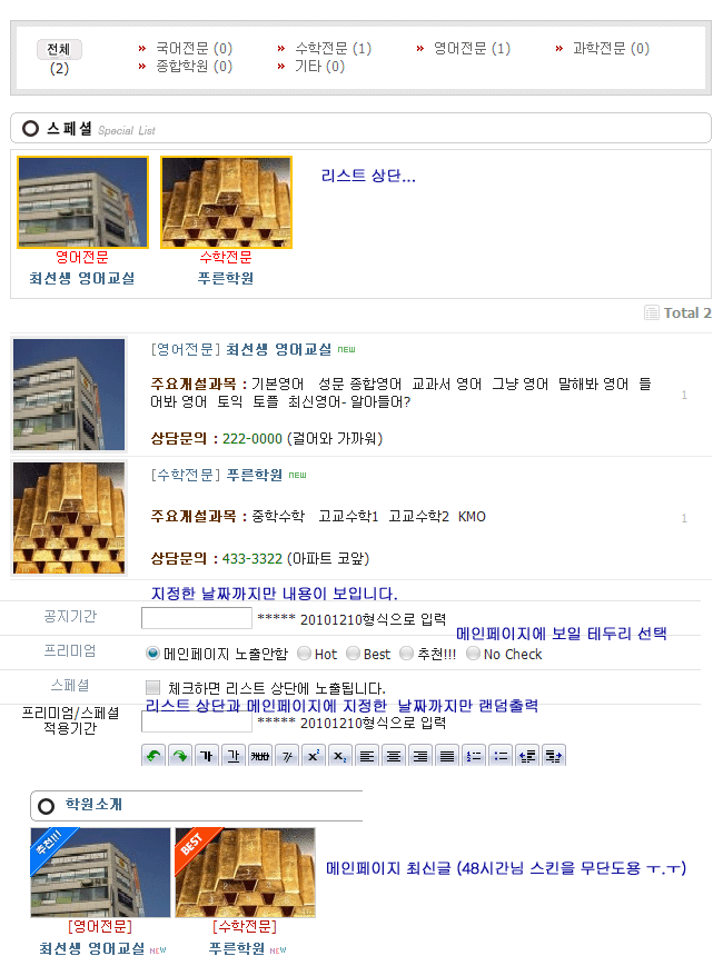 하나는 리스트 상단에, 하나는 메인페지에 보여지는 용도입니다.