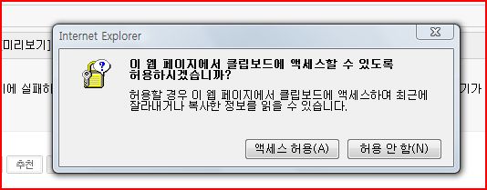IE6.0에선 안나오던데 7.0에선 나오네요.. 보안이 강화되었다고 봐야 되겠죠.. 클립보드 억세스 권한 같은것.... 아마도 각자 IE옵션으로 지정해야 할듯.. 합니다..