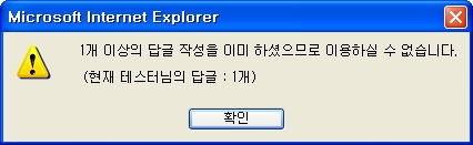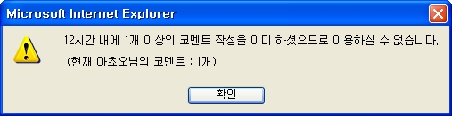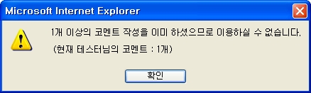 경고창과 함께 더 이상 코멘트 등록이 안됩니다. 각 게시물마다 10개씩만 쓸 수 있다는 말이되는거죠.