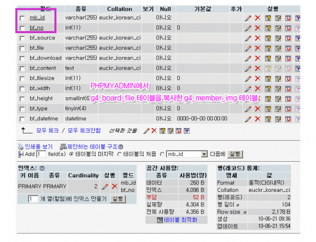 가.  g4_board_file  테이블을 g4_member_img 테이블로 하나 복사합니다.