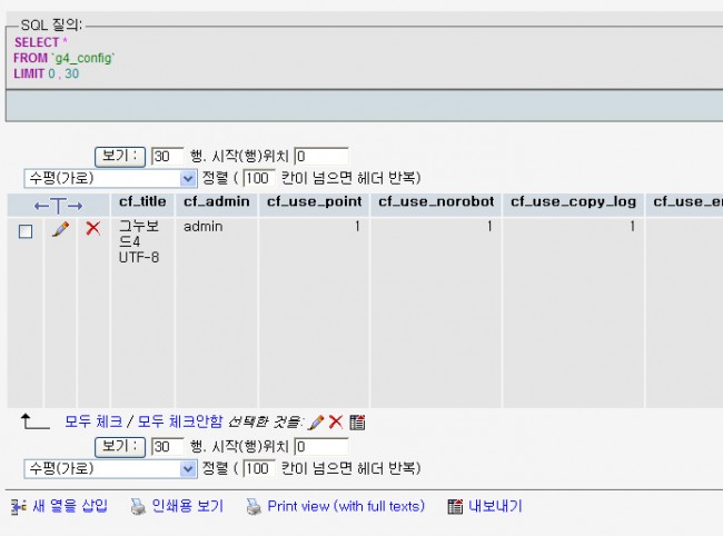 phpmyadmin 에서도 그누보드에서도 이상없이 이루어지더군요...