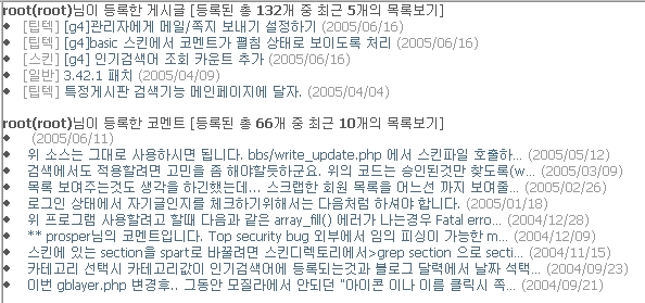 지정 게시판에서 자기가 작성한글과 코멘트 목록 조회하기관련링크