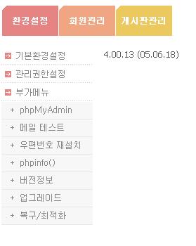관리자 메뉴에서 gnuboard 4 버전확인 메뉴 추가하기 정보
