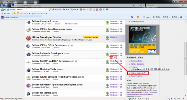eclipse는 indgo 버전을 이용했습니다. juna 버전은 너무 무거워서 ㅠㅠ