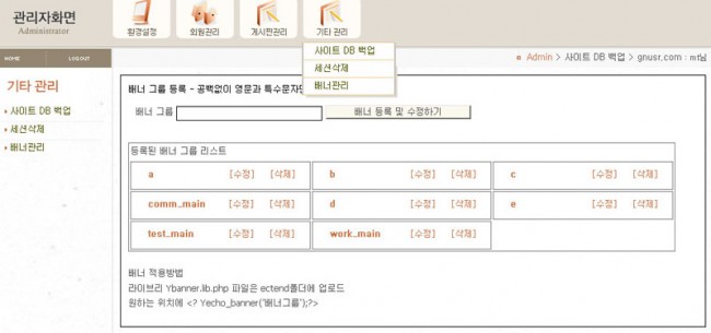 시스템이라고 밝히신것 처럼 이런 배너그룹을 원하는대로 생성해서 손쉽게 관리할수 있습니다.