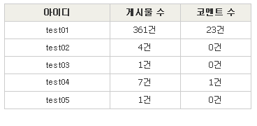 <!--// 아이디별/게시물수/코멘트수 출력 시작 --//-->