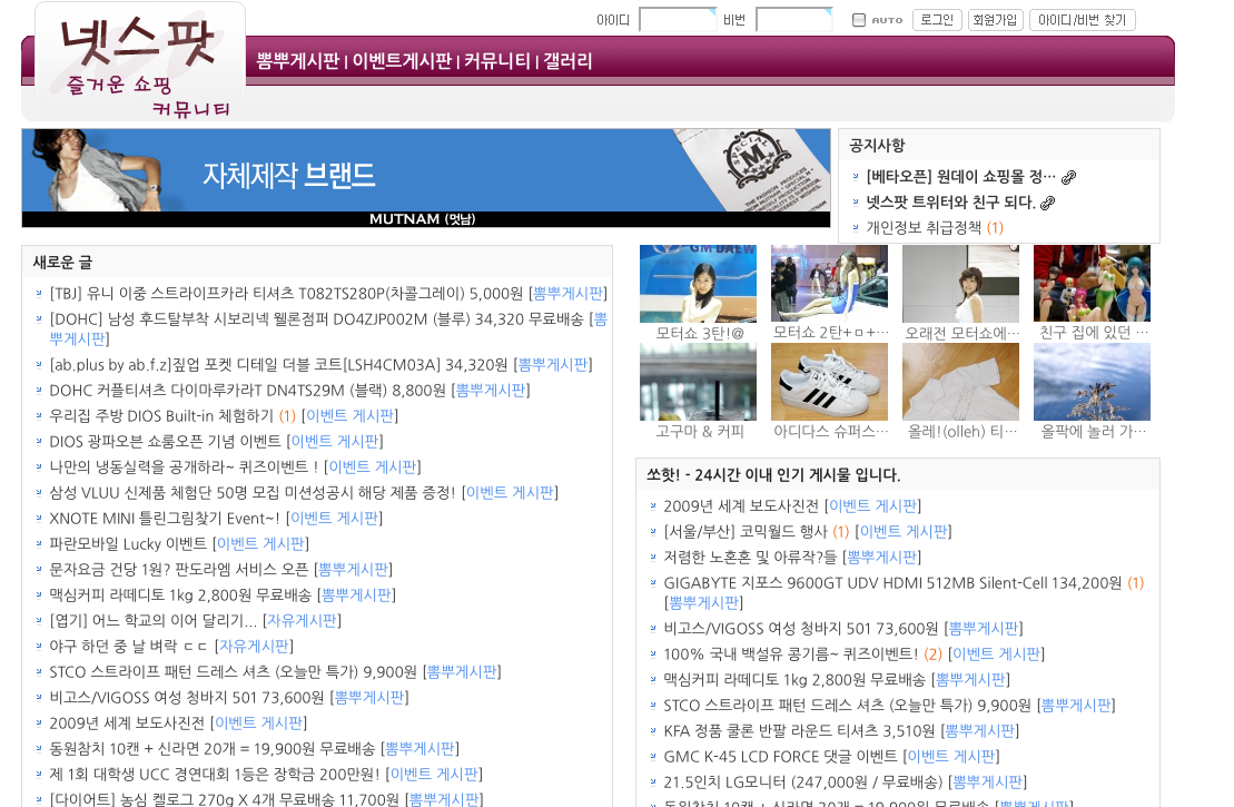 쇼핑 커뮤니티 넷스팟입니다. 정보 무난해 쇼핑 커뮤니티 넷스팟입니다. 누비 자기소개 아이디로 검색 회원게시물 자기소개 아이디로 검색 회원게시물 2009.08.12 21:17:04 조회 1,768 댓글 0 관련링크 http://netspot.kr 265회 연결 이전 게시글 다음 게시글 목록 본문 뽐뿌 정보~, 이벤트 정보~ 등이 있습니다. 디자인은 발로 해서 ㅡㅡ; 트윗으로 연동되어 트윗으로도 소식을 받아 볼 수 있습니다. 추천 0 댓글 전체 이전 게시글 다음 게시글 목록