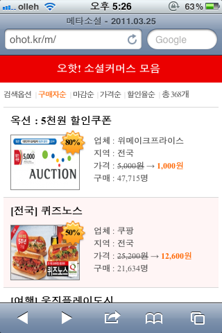 메타 소셜커머스 사이트 모바일 페이지 입니다.
