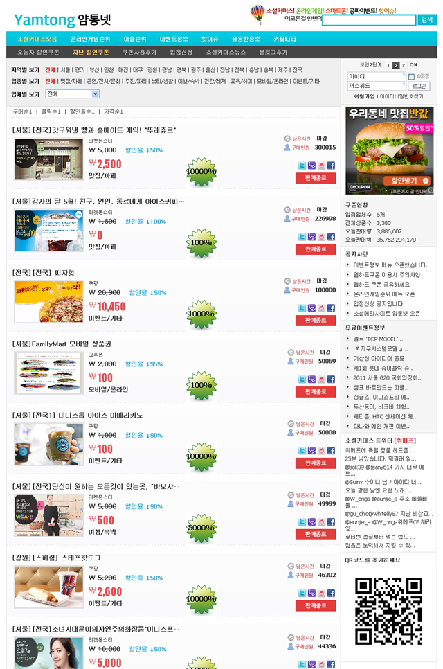 소셜커머스 모음 사이트 만들어보았습니다. 정보