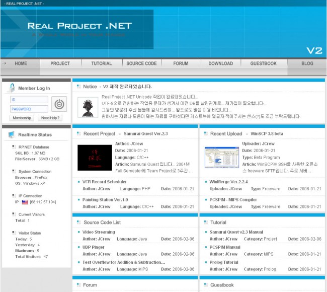 내용은 개인적인 홈페이지에... 커뮤니티적인 요소도 크게 없습니다... ^^;;