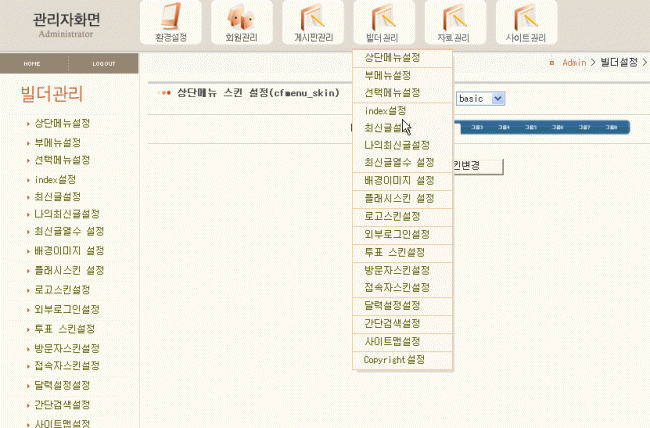 오호 빌더관리가 들어가니까 원래 오래전부터 그자리에 있었던 것처럼, 의당 그 자리에 있어야할 메뉴처럼 찹살떡모냥 척 달라붙네요. 아주 보기 좋고 어울립니다.