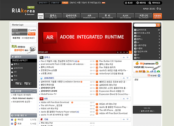 차세대 인터넷 기술인 RIA에 대해 좀더 쉽게 다가갈수 있도록 커뮤니티 형태로 제공하고 있습니다.