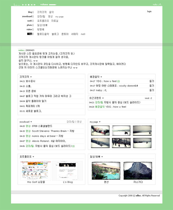 훌륭해 블로그 만들어봤어요.. (음악과 스노우보드)관련링크