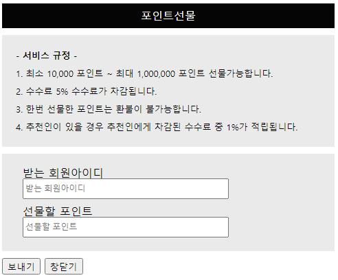 기존 자료 [포인트선물 플러그인] 와칸다포에버님에게 업로드 동의를 받았습니다.