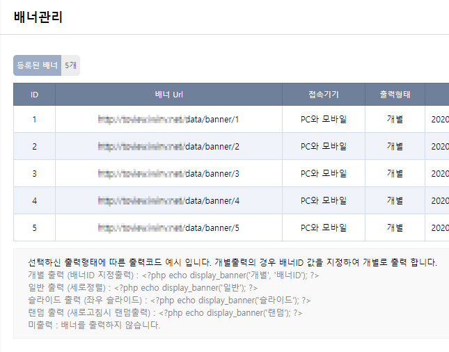개별 출력 (배너ID 지정출력) : <?php echo display_banner_bbs('개별', '배너ID'); ?>