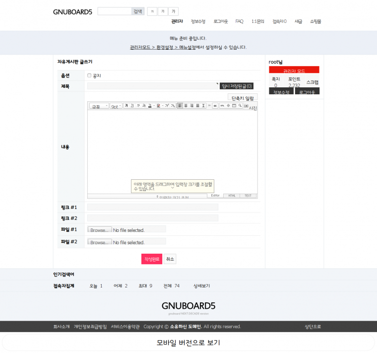 1. 그누보드 설치된 디렉토리에서 압축 풀면 끝.