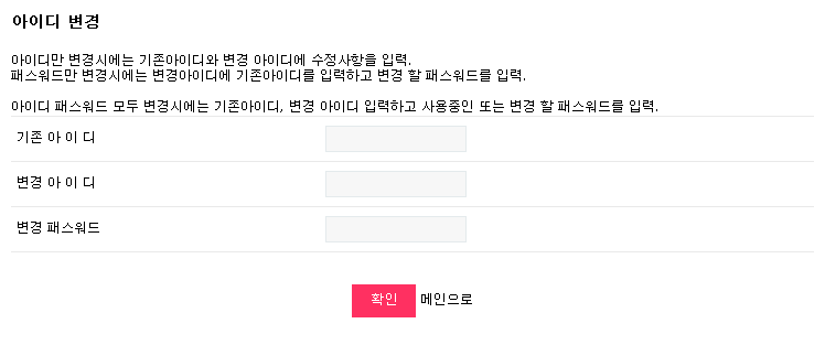 회원이 본인의 아이디/패스워드 변경하기 정보