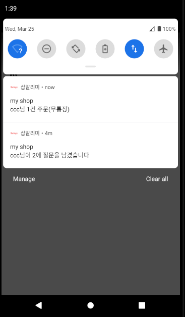 영카드 주문/상품 문의 실시간 알림 앱(안드로이드)
