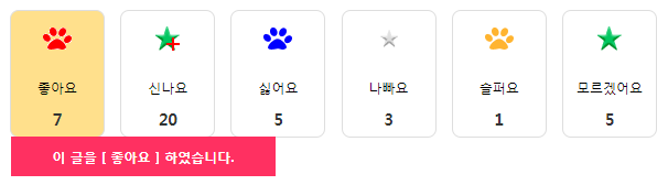 피리 게시글 반응 기능 Ver 0.0.1.1 (좋아요, 싫어요 6개 항목에 이미지 적용)