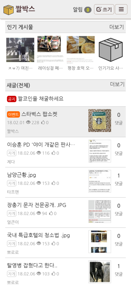 짤코인 이라고 코인을 모으면 이벤트 응모도 가능한 형태로 만들고 있으며 게임형태의 코인채굴(?)이 가능합니다.