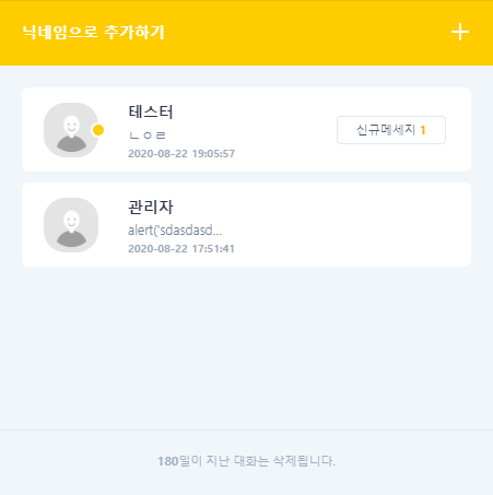닉네임 입력시 대화방 추가