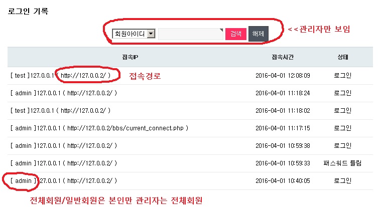 일반회원은 본인의 로그인 내역을 볼 수 있습니다
