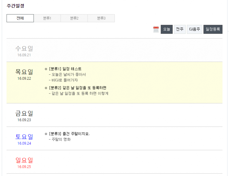 게시판 주간 일정 게시판