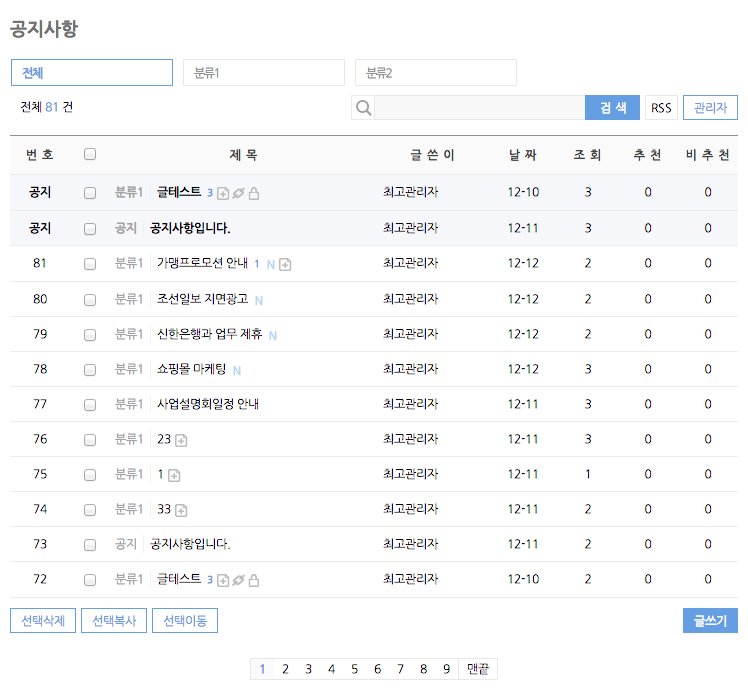 첫번째스샷은 로그인전 카테고리 사용안함이고 두번째는 관리자로그인+카테고리사용입니다.