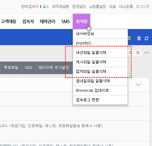 아무 페이지에서나 한번에 썸네일 파일 삭제 / 캡챠파일 삭제 / 캐시파일 삭제를 한번에 할 수있습니다