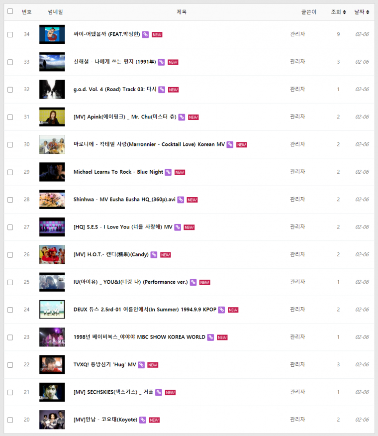 게시판 링크1에 유튜브공유주소를 입력하여, 유튜브영상 등을 출력하는 게시판 스킨입니다.
