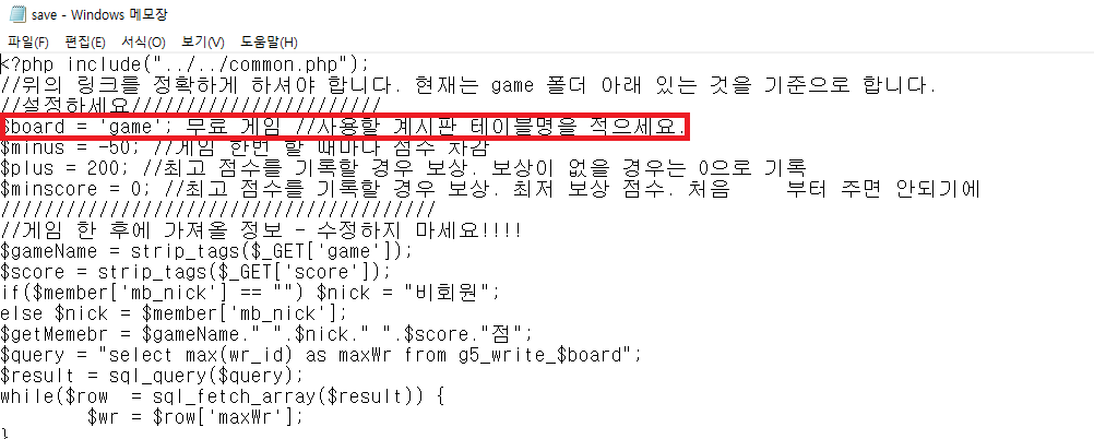 save.php에 보면 score 게시판명 넣는 것이 나옵니다.