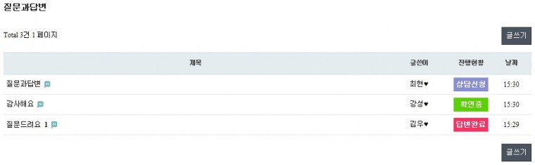 질문과답변 모바일 버전을 요청하셔서 제작했어요