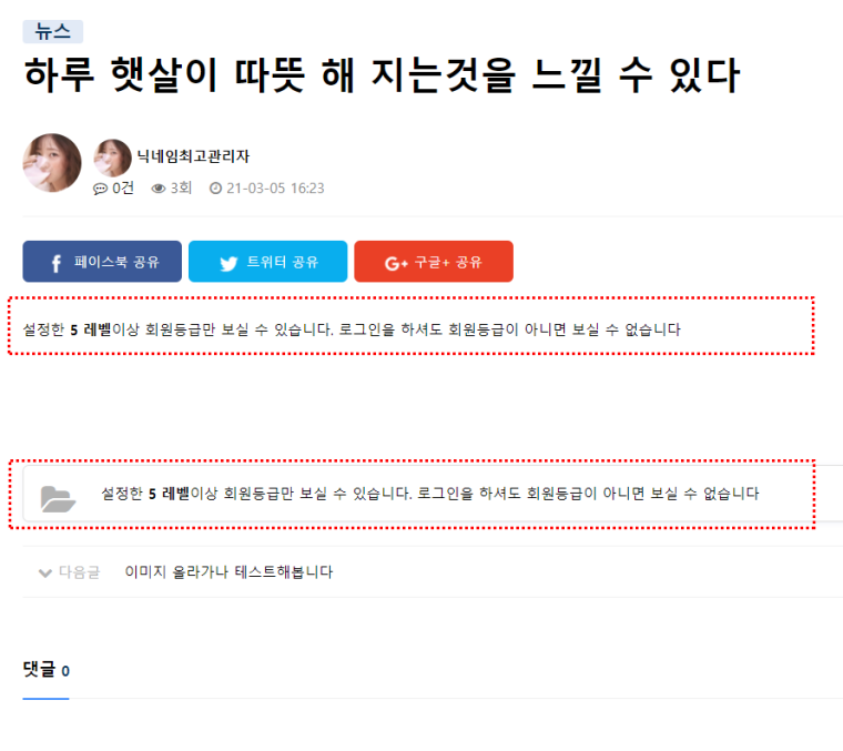 글이나 첨부파일은 설정한 회원레벨에서만 사용이 가능합니다.
